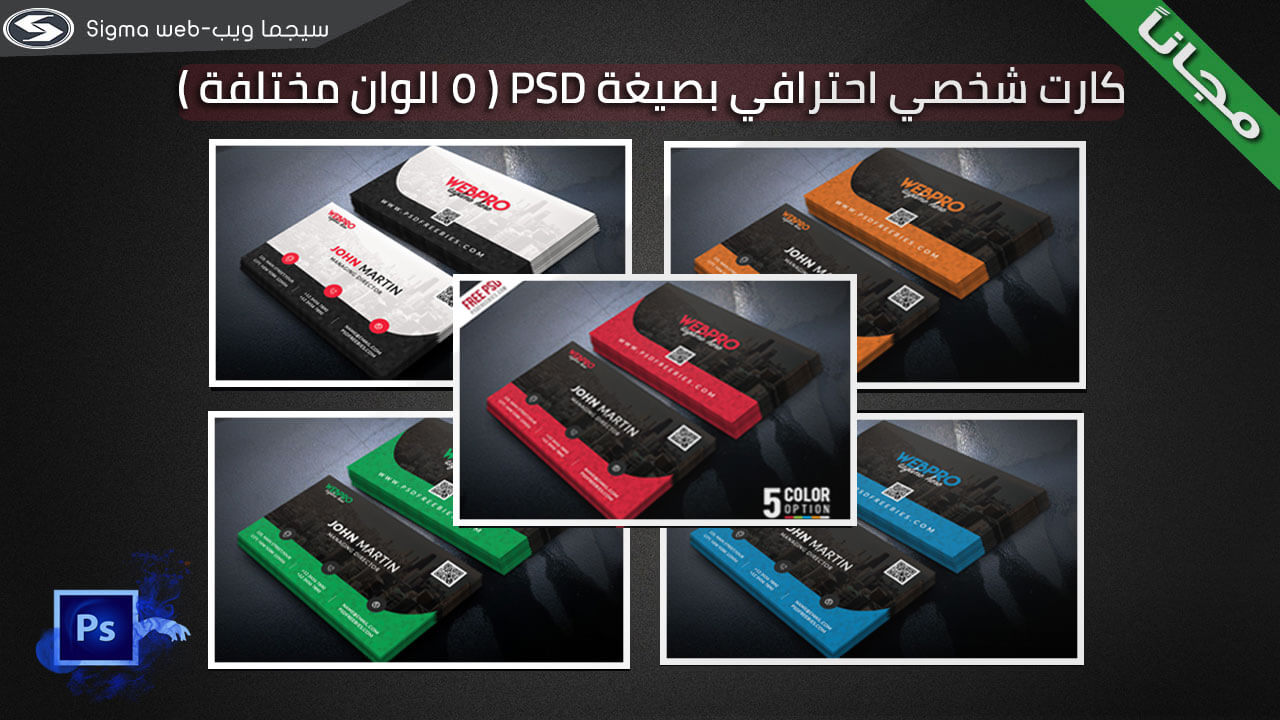 كارت شخصي احترافي جاهز للتعديل بصيغة Psd بخمسة الوان مختلفة مجانا 1zizou